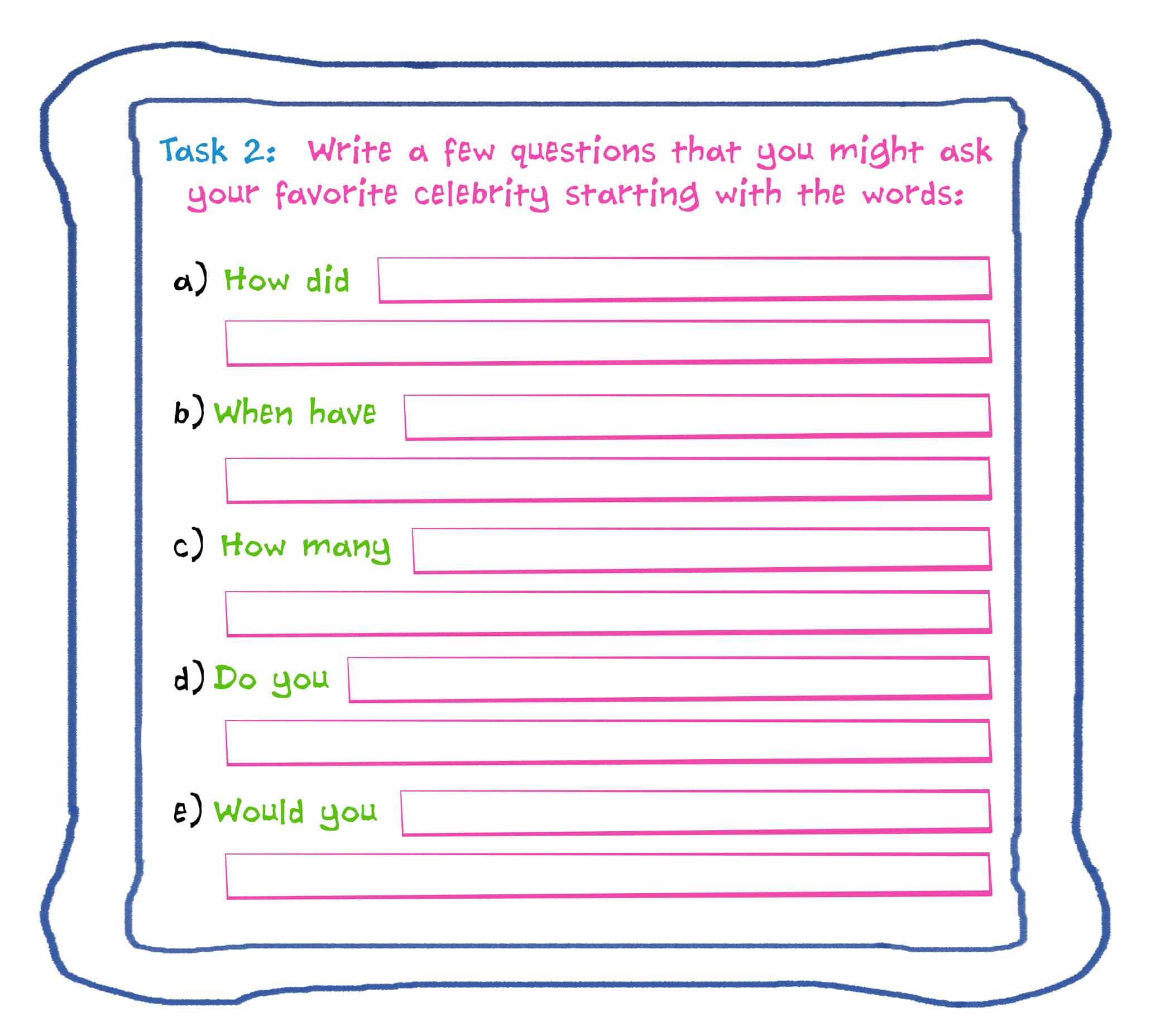 Questions and Question marks task 2